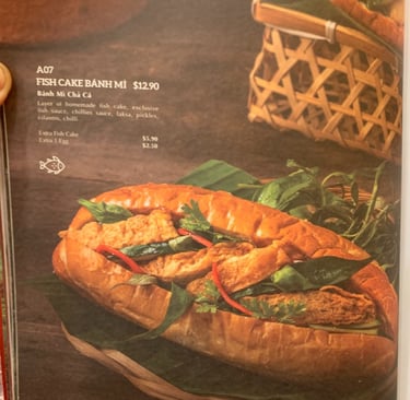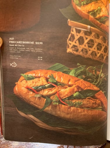 I went to a Vietnamese restaurant in town, Co Chung to try out a bahn mi and I love the food photography in the menu. I ordered this bahn mi as it appears to come with laksa leaves. In the menu description, it’s just called “laksa” though. After trying just the sliver of leaf, I can confirm it is the same leaf I used in cooking my laksa and the market vendors also call it “laksa leaf”. I found the bahn mi bun too high and crispy though so I couldn’t really get a satisfying bite of all the ingredients and I had to eat the bun almost like a biscuit because it’s that crispy. But the ingredients in there have finesse as the vegetables are sliced thinly, like the cucumber, and the leaves are plucked precisely. My complaints are that the bun is not as soft as the picture looks (see those ridges that makes me think it’s soft, chewy and crispy at the same time) and the presentation is also kinda off as I don’t see the “fish cakes”. They taste like processed fish cake though as it’s rubbery and heavy in MSG so I was disappointed by the flavour and texture when it was marketed as “homemade fish cake”.