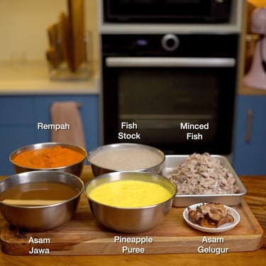 For Johor laksa, it's a more obscure recipe that's not commonly found since it's a high end dish. I happened to chance upon an Australian YouTuber Jackie M who partnered with a Chef Dato to demonstrate his recipe of laksa Johor. People carrying a Dato title are highly respected as the title is awarded by royalty, so again this feels like we're in the right place. I notice his Johor laksa recipe is quite similar to another laksa recipe featured in the critically acclaimed book "The Food of Singapore Malays" by Khir Johari. Khir published a recipe called "laksa Singapura" as he argues the laksa represents what is found in the region (Singapore is just next to Johor). This book is available for free in libraries so I recommend checking out this book for a rich historical analysis in Malay food.