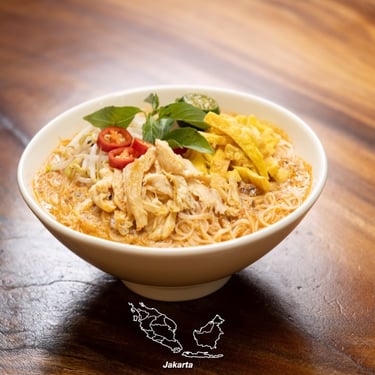 Compared to laksa, the curry noodles protein toppings are fairly similar too, like shredded chicken, and cockles, and tofu puffs. Veggie toppings are also bean sprouts and long beans. The base preparation is usually chicken (like chicken curry) and the standard rempah is also fried in oil till it splits, then add chicken stock to essentially form a chicken-based curry.